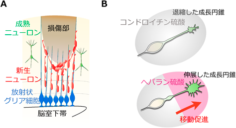 脳梗塞などの脳損傷によって神経細胞(ニューロン)やグリア細胞は失われ、脳機能障害が生じる。一方で、生後の脳においても側脳室下帯(ventricular-subventricular zone, V-SVZ)においては新生ニューロンが産生されることから、脳は損傷後に機能回復できるポテンシャルを備えている。